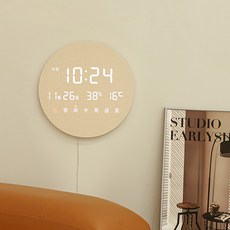 심플한 디자인에 LED 디스플레이로 시간과 날짜를 동시에 확인할 수 있어 실용적인 27cm 벽시계다.