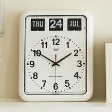 깔끔한 화이트 컬러와 플립 방식 캘린더가 조화를 이루어 실용성과 인테리어 효과를 동시에 갖춘 벽시계다.