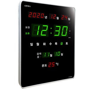 대형 디지털 화면으로 시간과 날짜를 한눈에 확인할 수 있으며 실용적이고 깔끔한 디자인의 벽시계다.