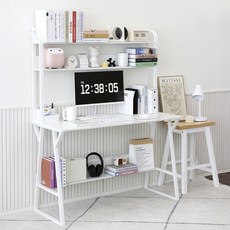 코멧 수납 선반형 철제 책상 1200, 화이트