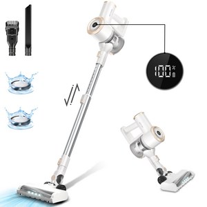 가벼운 무선 스틱형 디자인으로 집안 구석까지 청소 가능하며, 강력한 흡입력과 편리한 핸디 기능을 갖춘 실용적인 청소기.