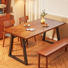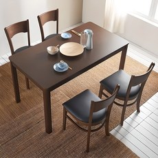 견고한 원목으로 제작된 4인용 식탁 세트로, 월넛 색상과 심플한 디자인이 조화를 이루어 가족 식사나 모임에 적합하며 의자 4개가 포함되어 바로 사용 가능합니다.