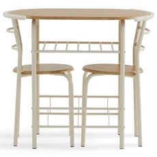 크림과 우드 조합의 미니 2인용 식탁 세트로, 작은 공간에도 적합하며 심플하고 모던한 디자인으로 가정이나 카페 공간에 잘 어울립니다.