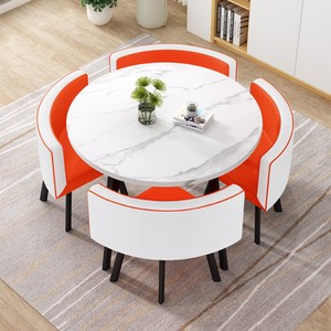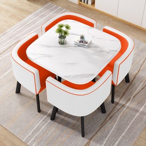 MEETON 감성 인테리어 4인용 티 테이블 세트 원목 의자포함 식탁 원형 카페 둥근모서리, 사각-마블화이트/체어-화이트오렌지