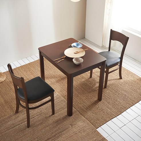견고한 원목으로 제작된 2인용 식탁세트로, 컴팩트한 사이즈로 작은 공간에도 적합하며 의자 2개가 포함되어 실용적이고 내구성이 뛰어난 디자인입니다.