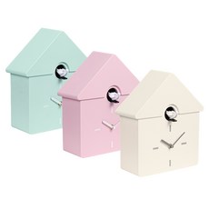 화이트 밀크 색상과 뻐꾸기 디자인이 조화를 이루며, 무소음 기능으로 조용한 환경을 유지하고 독특한 인테리어 포인트를 제공하는 벽시계입니다.