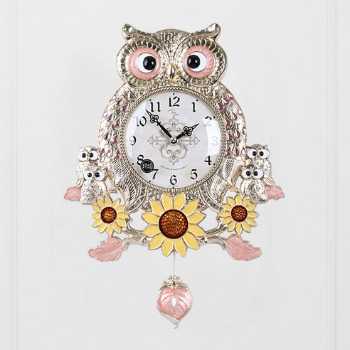 골드부엉이가족 무소음벽시계, 골드부엉이가족_골드레터링