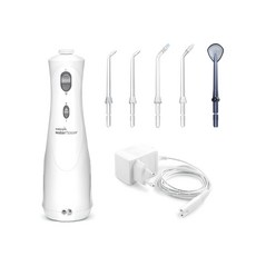 휴대가 간편하며 물치실 기능으로 치아 사이와 잇몸 사이를 깨끗하게 세정할 수 있는 구강세정기로, 일상적인 구강 관리와 치간 플라그 제거에 효과적임.
