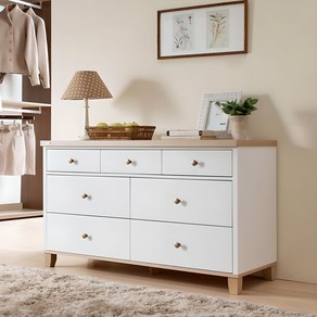 미호 3단 와이드 서랍장 방문설치 화이트 + 오크 7단은 세련된 투톤 디자인과 넉넉한 7단 서랍으로 다양한 옷과 소품을 깔끔하게 정리할 수 있으며 방문 설치로 바로 사용할 수 있는 실용적인 수납 가구입니다.
