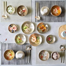 전통 방짜유기 방식으로 제작된 4인용 반상기 세트로, 견고하고 고급스러운 금속 소재로 구성되어 오랜 사용에도 변색과 변형이 적으며, 한국 전통 식문화를 느낄 수 있는 제품입니다.