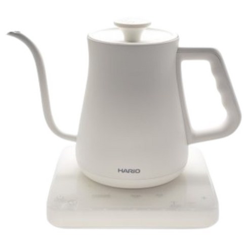 정밀한 온도 조절이 가능한 하리오 전기주전자로, 커피나 차를 최적 온도로 쉽게 준비할 수 있으며 깔끔한 화이트 디자인으로 주방 어디에나 어울리고 사용 편의성이 높은 제품입니다.